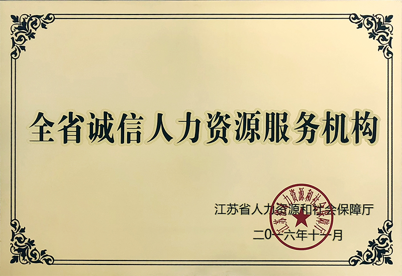 “江蘇省誠信人力資源服務機構”、“江蘇省工人先鋒號”等多項榮譽稱號。